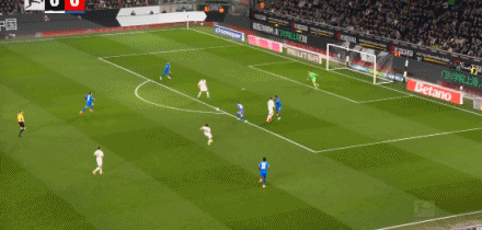 第45分钟,加西亚打门,桑德尔自摆乌龙,门兴1-1药厂