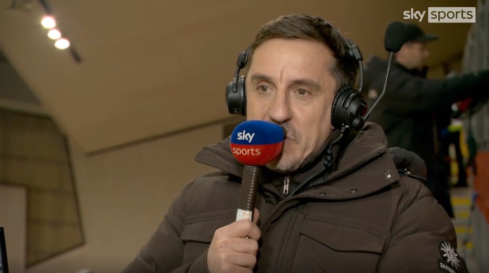 在天空体育担任现场解说的加里-内维尔对这一判罚表达了强烈不满。他表示:“这真的让人觉得太不公平了。我知道规则摆在那里,但比赛本身的‘味道’已经完全被抹掉了。没有任何一个人会想看到这个进球被取消,可它偏偏就是被取消了,实在太扫兴了。利物浦输在被罚下一人,曼城则输在没能得到一个进球。你等于亲手扼杀了本赛季最精彩的瞬间之一。”
