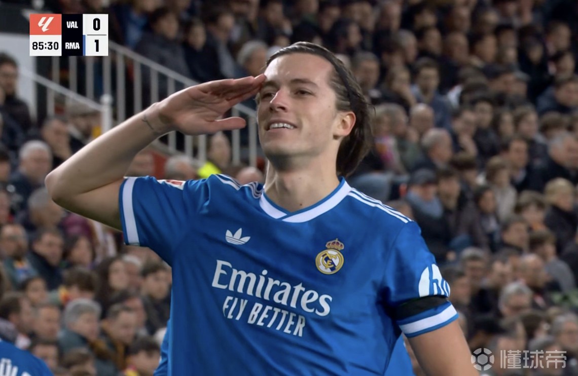 西甲第23轮,皇家马德里客场对阵瓦伦西亚,下半场赫伊森助攻卡雷拉斯破门,这是自2022年4月以来首次有皇马后卫在客场比赛中连线进球。