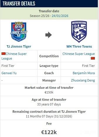 德转显示,方镜淇从天津津门虎加盟武汉三镇的转会费约100万人民币。