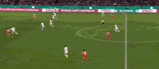 当时是一个类似的情形,迈克尔把球传给我。我觉得那脚传球非常到位。我稍微有点低估了球速,以为它会慢一点。结果球弹了一下,不过我很幸运还能及时赶上,把球轻轻挑过门将,最终形成一个明显的点球。对我们来说这当然很关键,因为在那之前比赛走势其实可能朝任何一方倾斜。我认为我们当时整体表现更好,最终赢球也是应得的,但在德国杯里,你永远无法预料会发生什么。