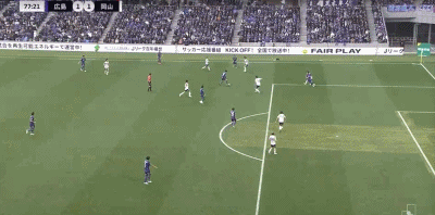 第10分钟,江坂任抽射破门,冈山绿雉1-0领先广岛三箭