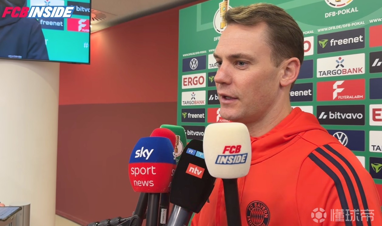 德国杯1/4决赛,拜仁2-0战胜莱比锡,拜仁门将诺伊尔赛后在混采区接受了采访。