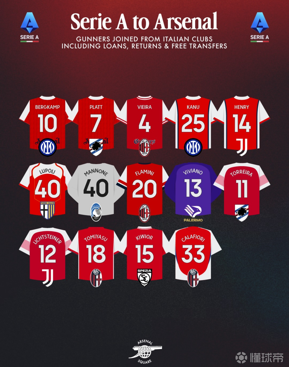 阿森纳从意甲签下的球员们: