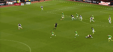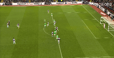 第36分钟,巴恩斯突入禁区,小角度射门击中立柱