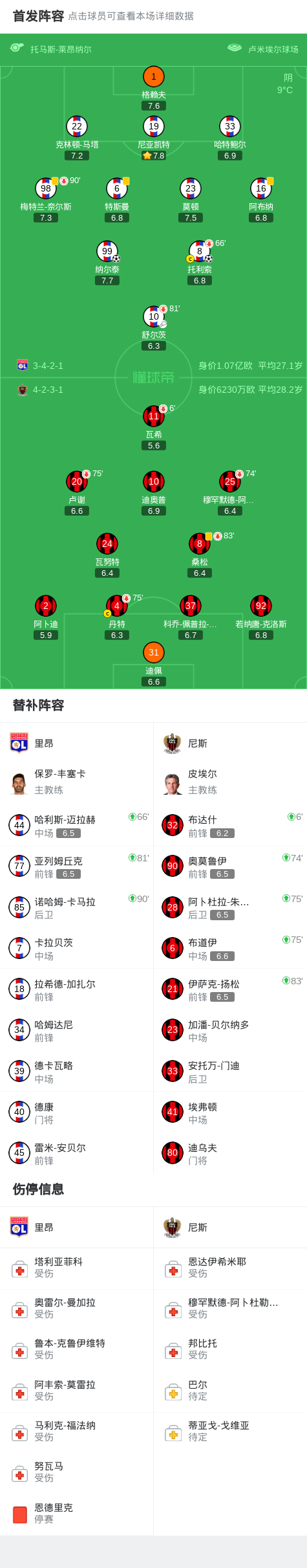 北京时间2月16日法国足球甲级联赛第22轮,里昂主场迎战尼斯。比赛中,里昂球员完成两次破门,先是在半场结束后不久由托利索接队友传球建功,随后纳尔泰也打入一球。最终里昂以2-0的比分击败尼斯。