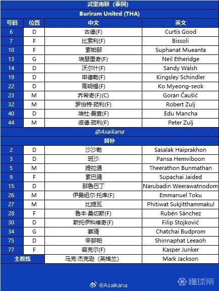 替补:2-沙沙勒、3-班沙、5-汶马探、9-素巴猜、15-那鲁巴丁、26-托库、27-比提瓦、28-鲁文-桑切斯、30-菲利普-斯托伊科维奇、34-察猜、75-辛那帕、77-容克尔