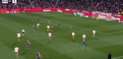 第86分钟,双方中路争抢球权,埃切维里得球推进到弧顶,与孔德对抗后者倒地不起,赫罗纳继续进攻做球,贝尔特兰得球调整一步打门得分!最终主裁认定进球有效!赫罗纳2-1巴萨