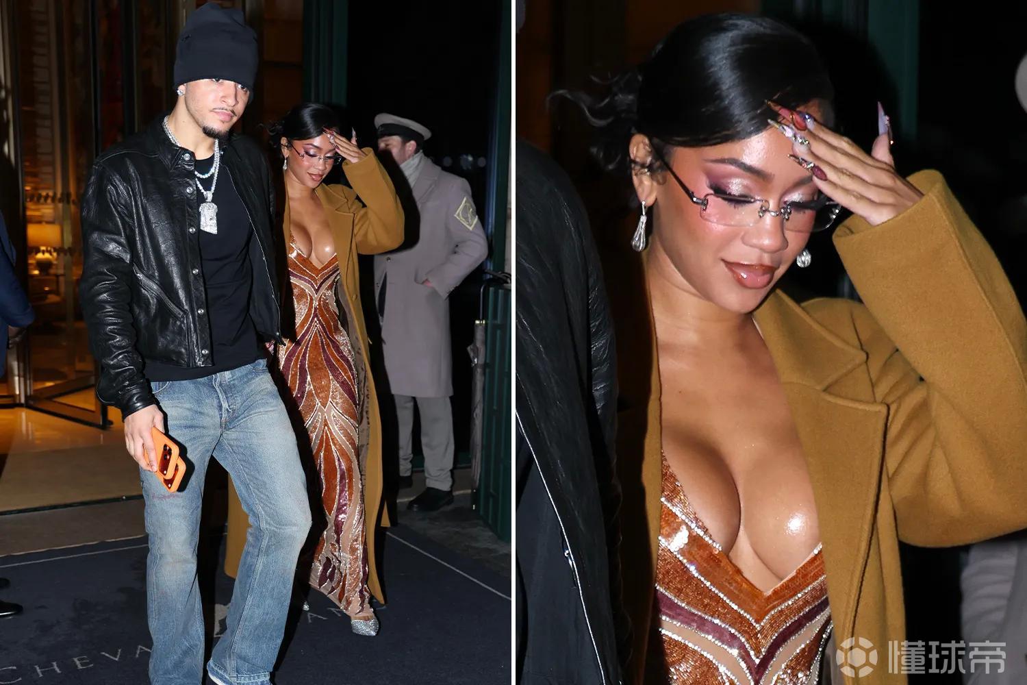 近日,桑乔与女友萨维蒂在巴黎现身,两人手牵手走过红毯,造型吸睛。桑乔头戴黑色针织帽,身穿皮夹克搭配黑色T恤和牛仔裤,整体风格低调。32岁的萨维蒂则身披棕色外套,内搭低胸马赛克连衣裙,成为现场焦点。