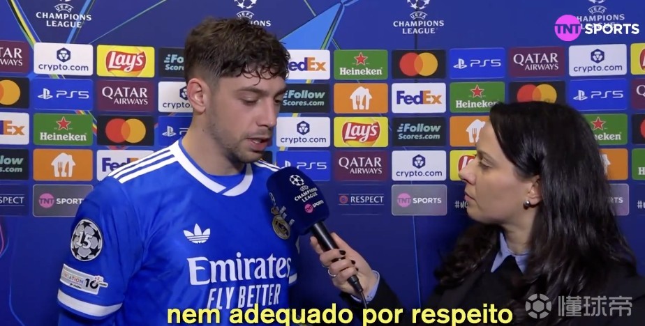 欧冠淘汰赛附加赛首回合,皇马客场1-0战胜本菲卡,皇马队长巴尔韦德赛后接受了TNT体育巴西频道的采访。